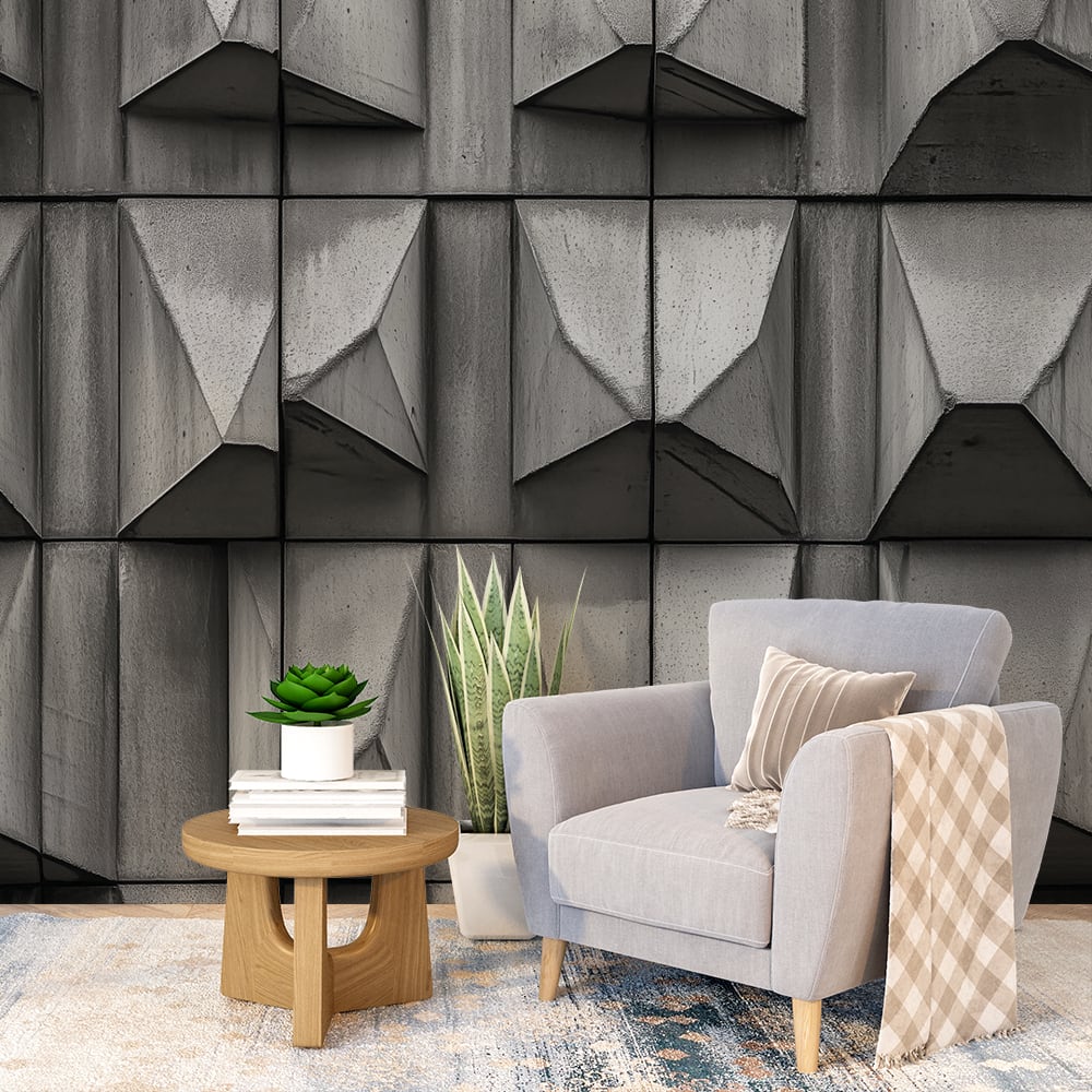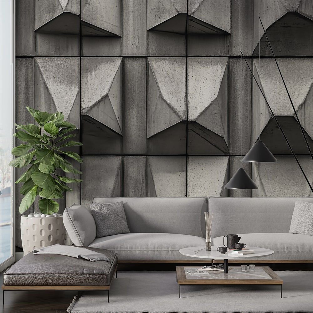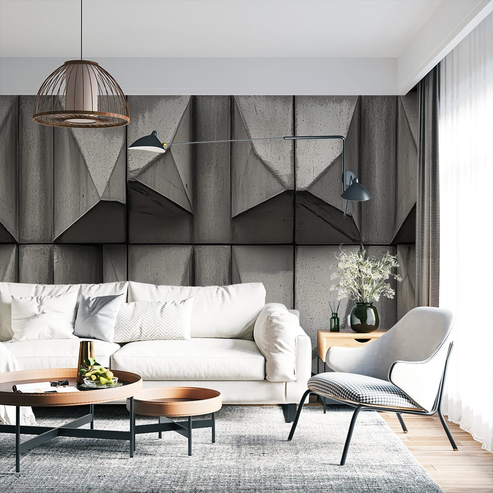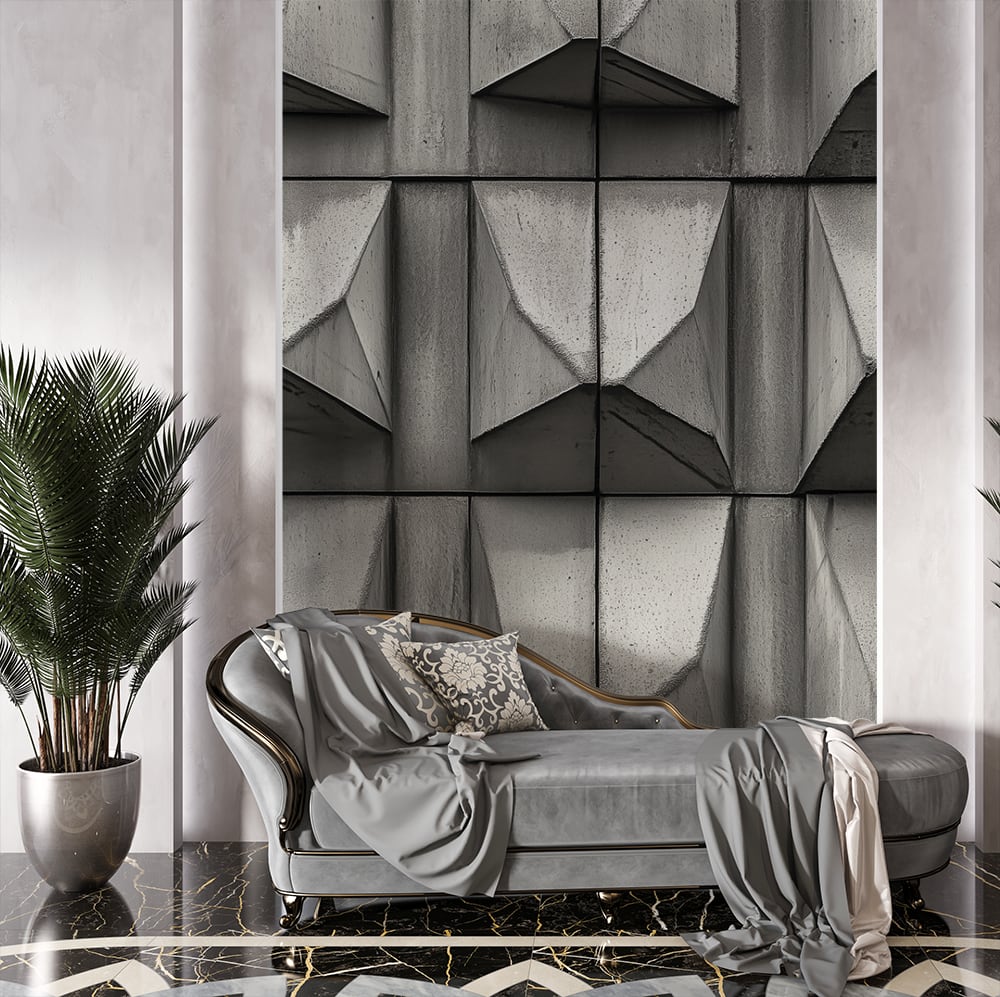 • Фототапет геометричен дизайн бетон — създава впечатляваща атмосфера и съвременен стил