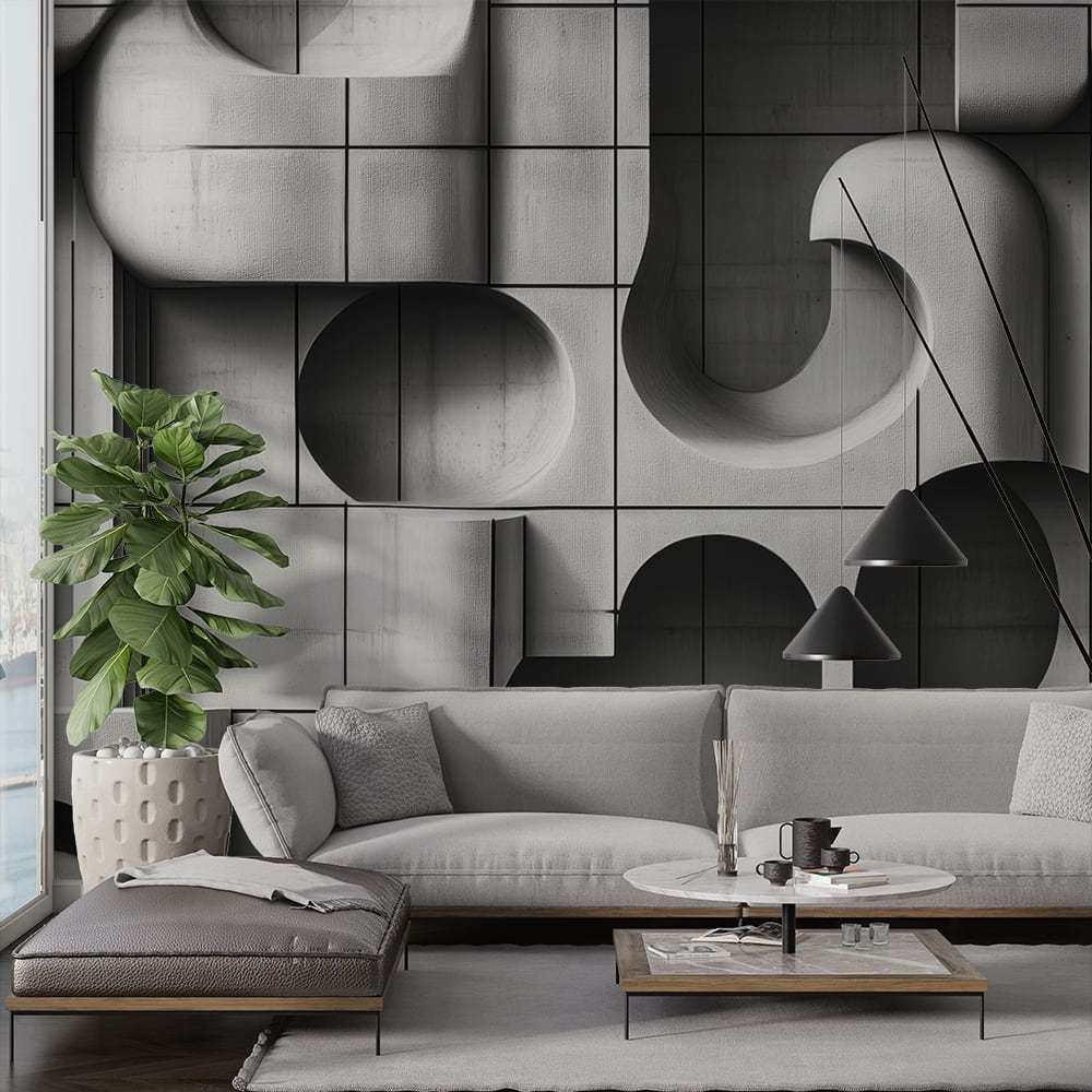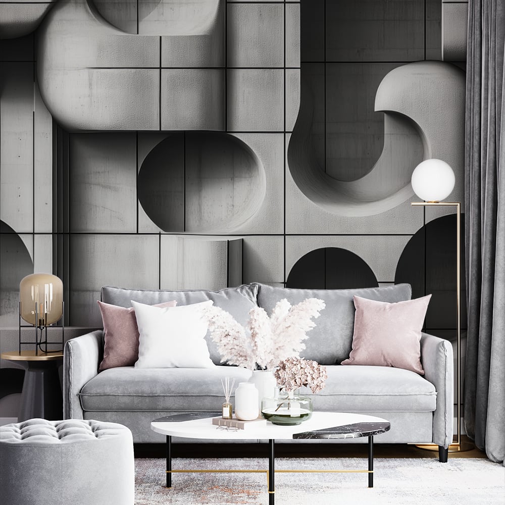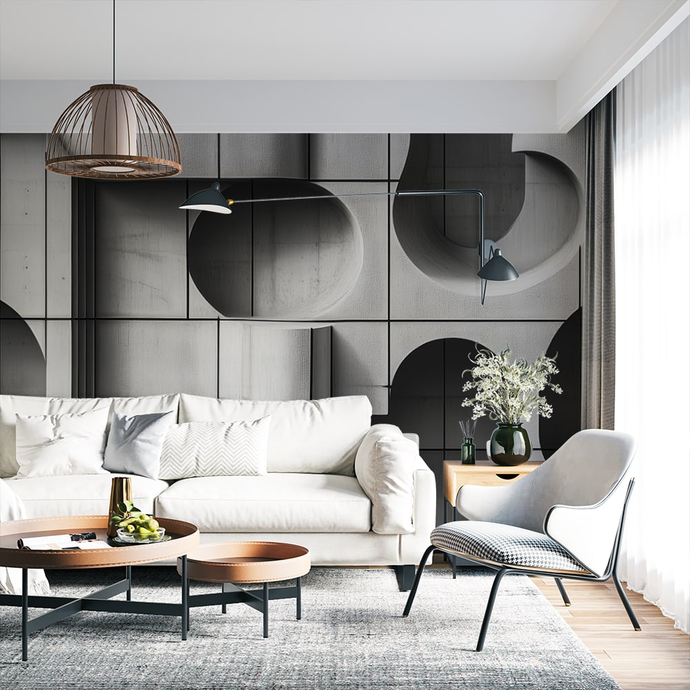 Фототапет Геометрични форми за хол с елегантни линии и модерен дизайн на стената.
