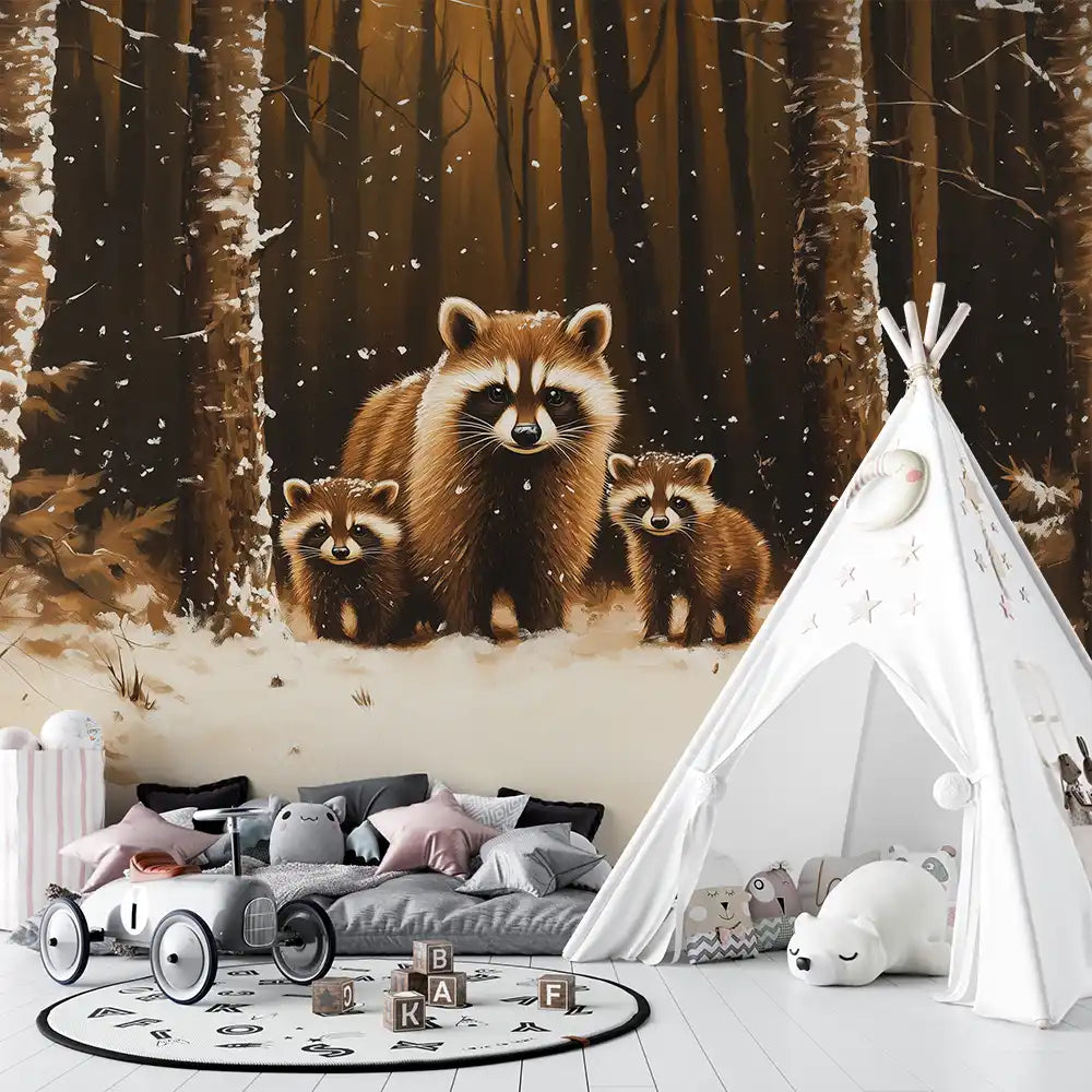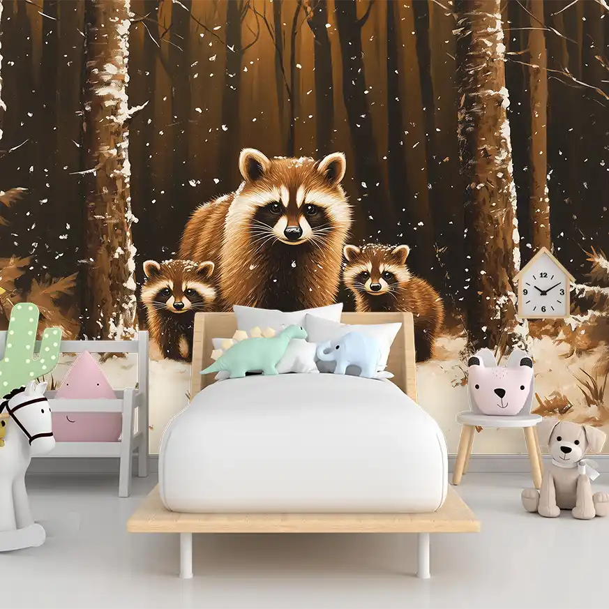 Самозалепващият стенен декор Горски усмивки е идеално решение за преобразяване на стаята за 30 минути. Дизайнът включва нежно изрисувано семейство миещи мечки сред снежна гора, където любопитните им очи разказват вълшебна зимна приказка, които предизвикват усмивки. Безопасен за деца — отпечатан с HP латексни мастила върху PVC-free еко материал без вредни емисии и без мирис.