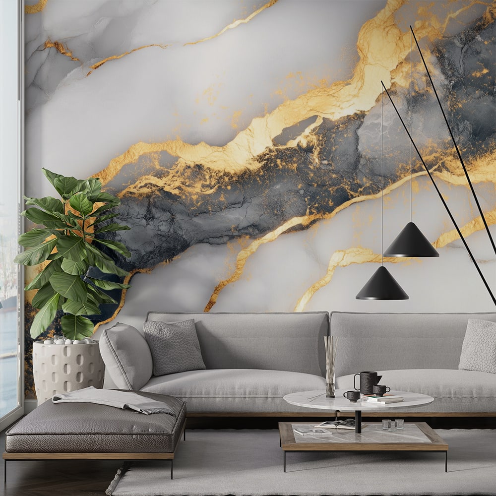 Фототапет Златни Линии и Сив Мрамор | Елегантен Дизайн