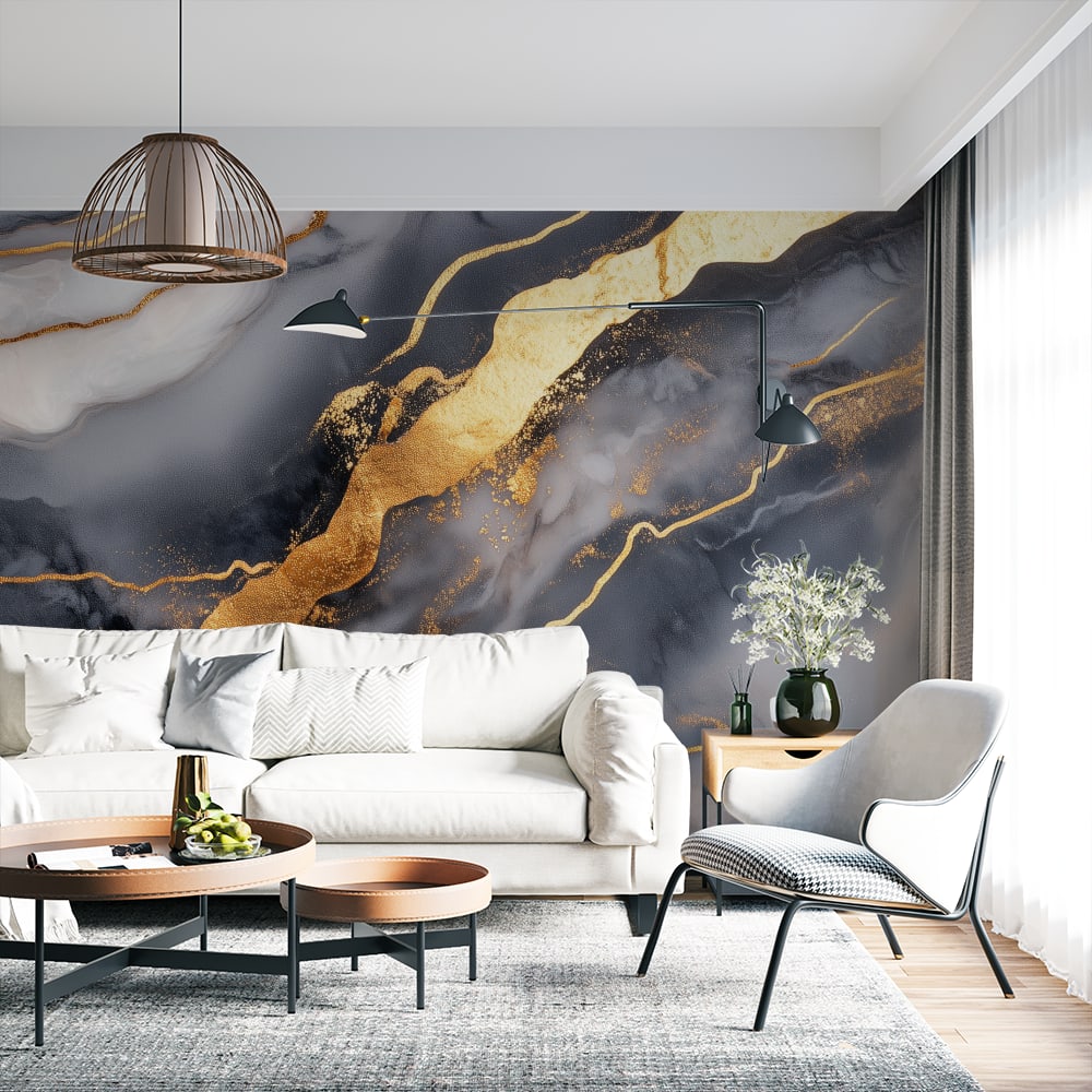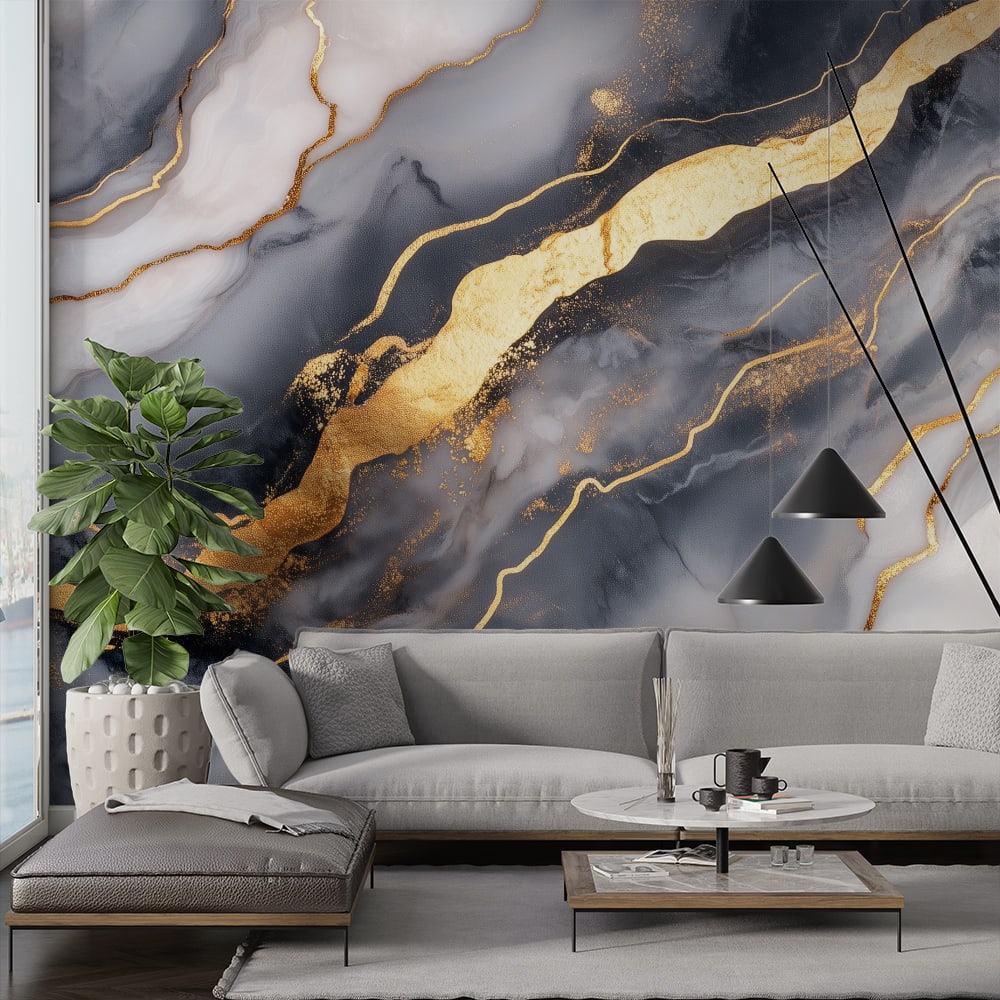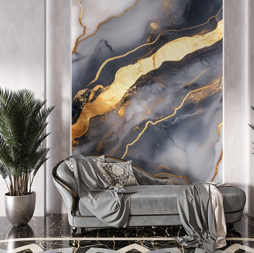 Фототапет Златни Линии и Тъмен Мрамор | Луксозен Дизайн