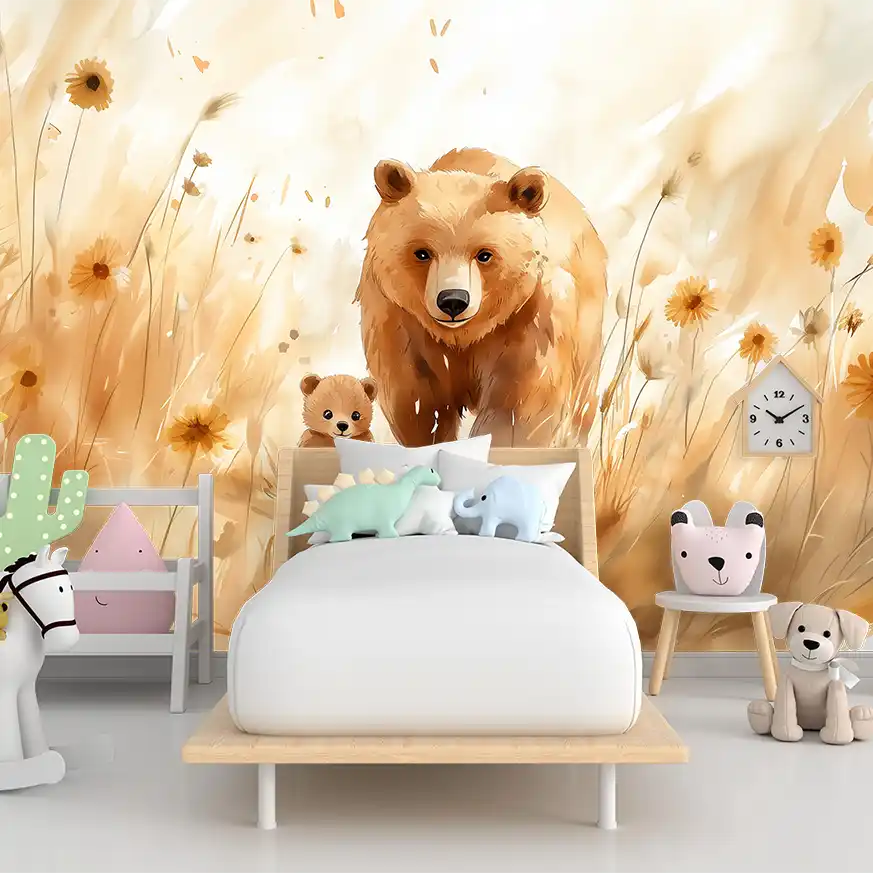 Фототапет носорог за детска стая е самозалепващият стенен декор, който ще преобрази пространството в рамките на само 30 минути. С дизайна, включващ акварелен портрет на майка носорог заедно с малкото й, вплетен в палитра от топли земни тонове и стилизирани полски цветя, този фототапет носорог за детска стая създава уникална и уютна атмосфера, която ще предизвика усмивки и радост у децата. Освен естетическата си стойност, той е и безопасен за деца — отпечатан е с HP латексни мастила върху PVC-free еко материал, който е без вредни емисии и без мирис.