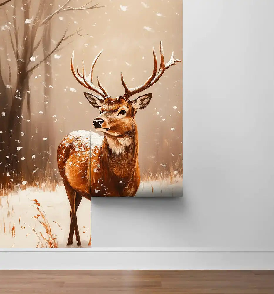 Самозалепващият стенен декор Приказен зимен елен е идеално решение за преобразяване на стаята за 30 минути. Дизайнът включва величествен елен, изправен сред снежинки и мъглива гора, които предизвикват усмивки. Безопасен за деца — отпечатан с HP латексни мастила върху PVC-free еко материал без вредни емисии и без мирис.