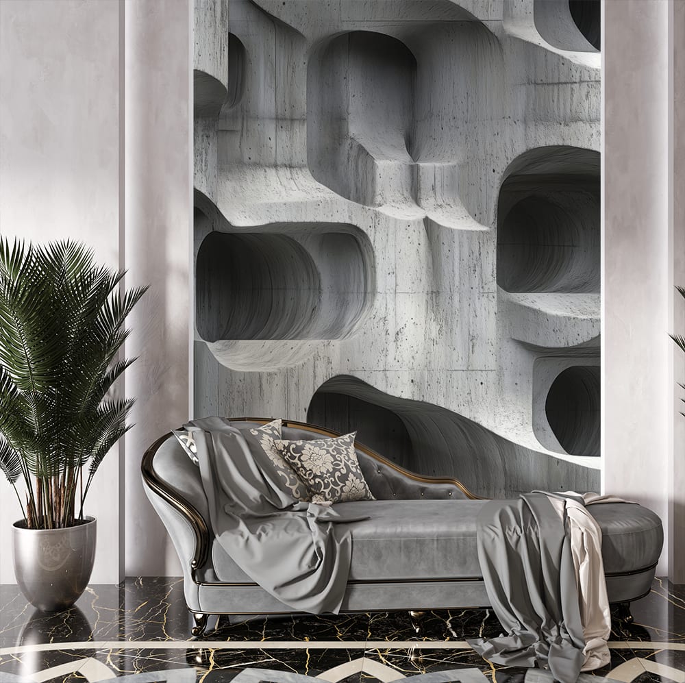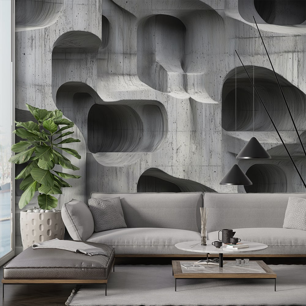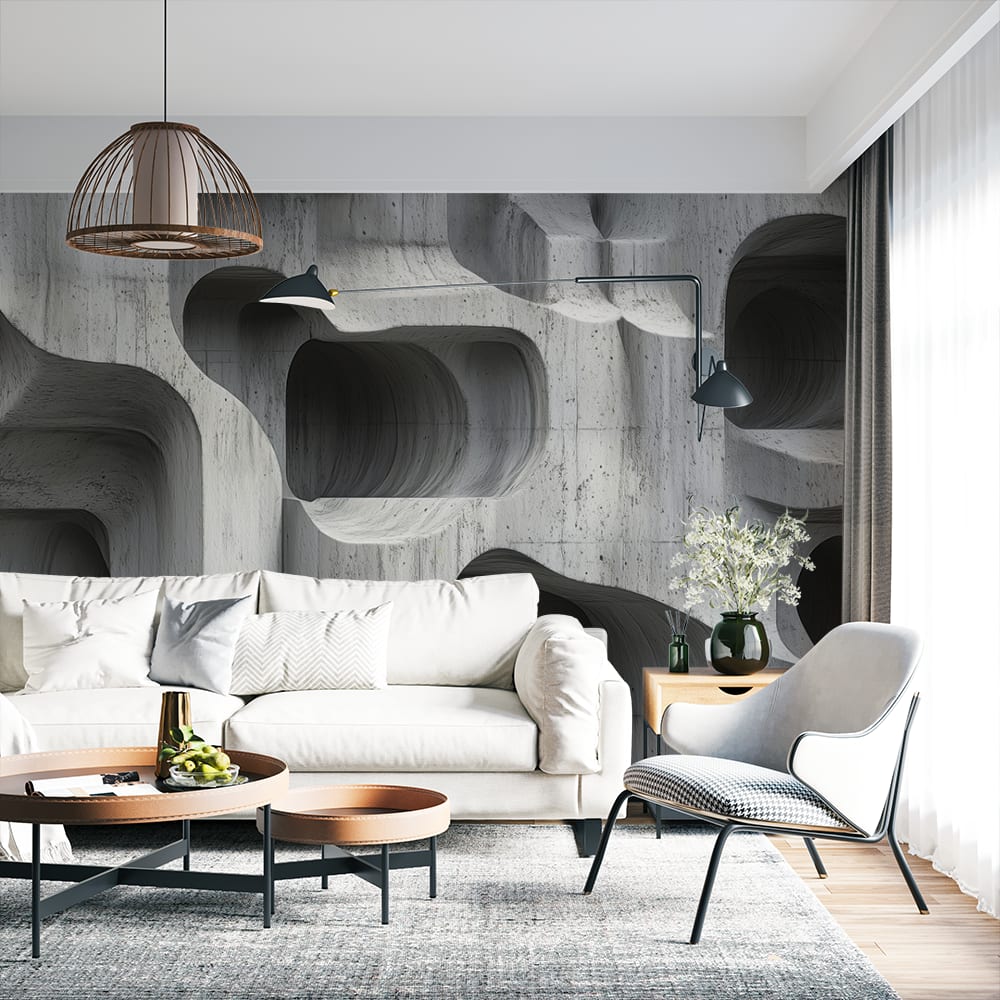 Абстрактни фототапети за хол с изискан дизайн и стилни извивки, които преобразяват пространството.