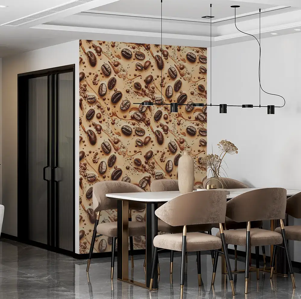 Фототапетът „Кафени зърна в кремава текстура“ ще внесе топлина, уют и ароматна идентичност във всеки интериор – от модерни кафенета до елегантни заведения.