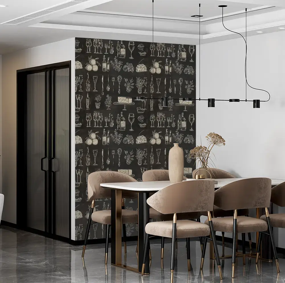 Фототапетът „Арт скици с вино и гурме елементи“ е чудесно допълнение към всеки интериор, вдъхновен от добрия вкус, уюта и кулинарното изкуство.